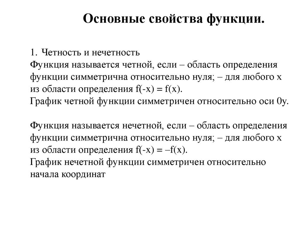 Основные свойства функции.1. Четность и нечетность