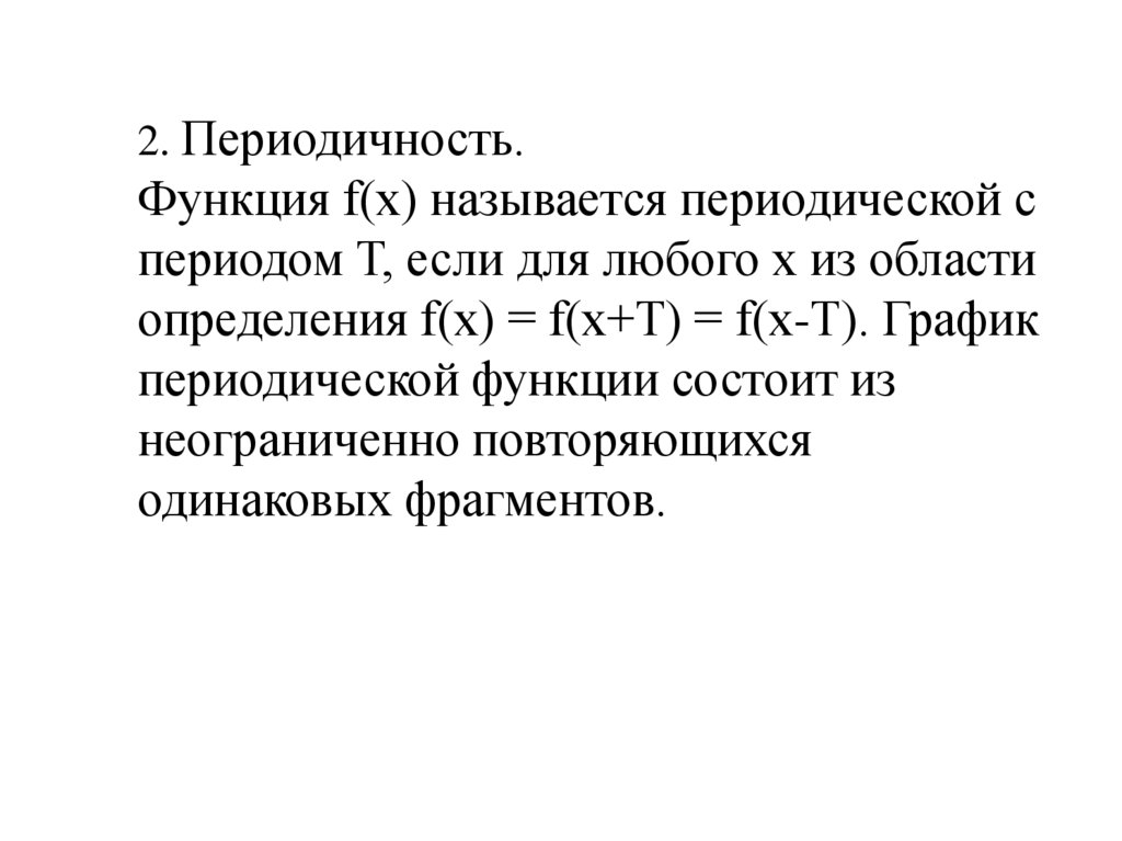 2. Периодичность.Функция f(x) называется периодической с