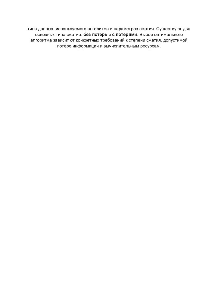 типа данных, используемого алгоритма и параметров сжатия. Существуют дваосновных типа сжатия: без потерь и с потерями. Выбор оптимального