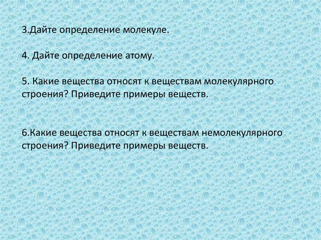 3.Дайте определение молекуле.4. Дайте определение атому.