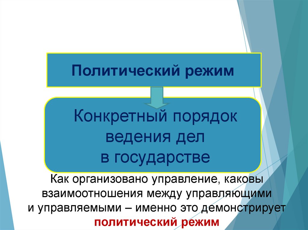Термин политический режим — производный от латинскогослова regimen, т.е. направление, в переносном смысле