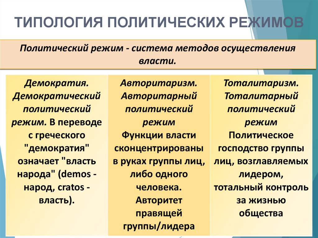 ТИПОЛОГИЯ ПОЛИТИЧЕСКИХ РЕЖИМОВПолитический режим - система методов осуществления