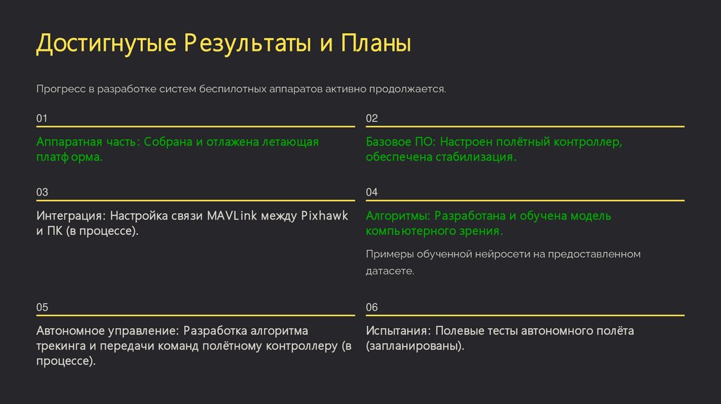 Достигнутые Р езультаты и ПланыПрогресс в разработке систем беспилотных аппаратов активно продолжается.