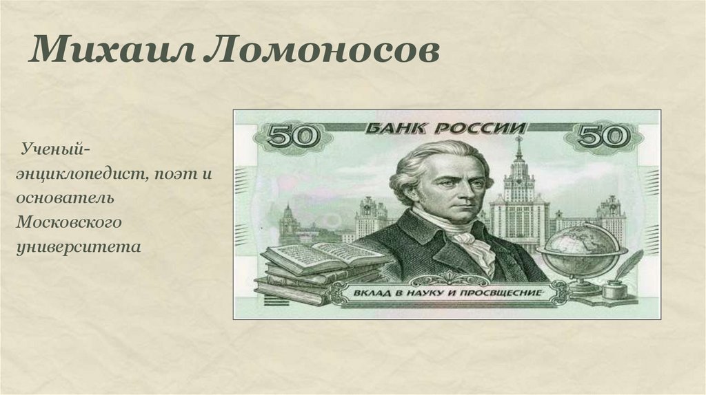 Михаил ЛомоносовУченыйэнциклопедист, поэт и