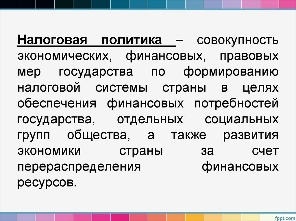 Налоговая политика – совокупностьэкономических, финансовых, правовых