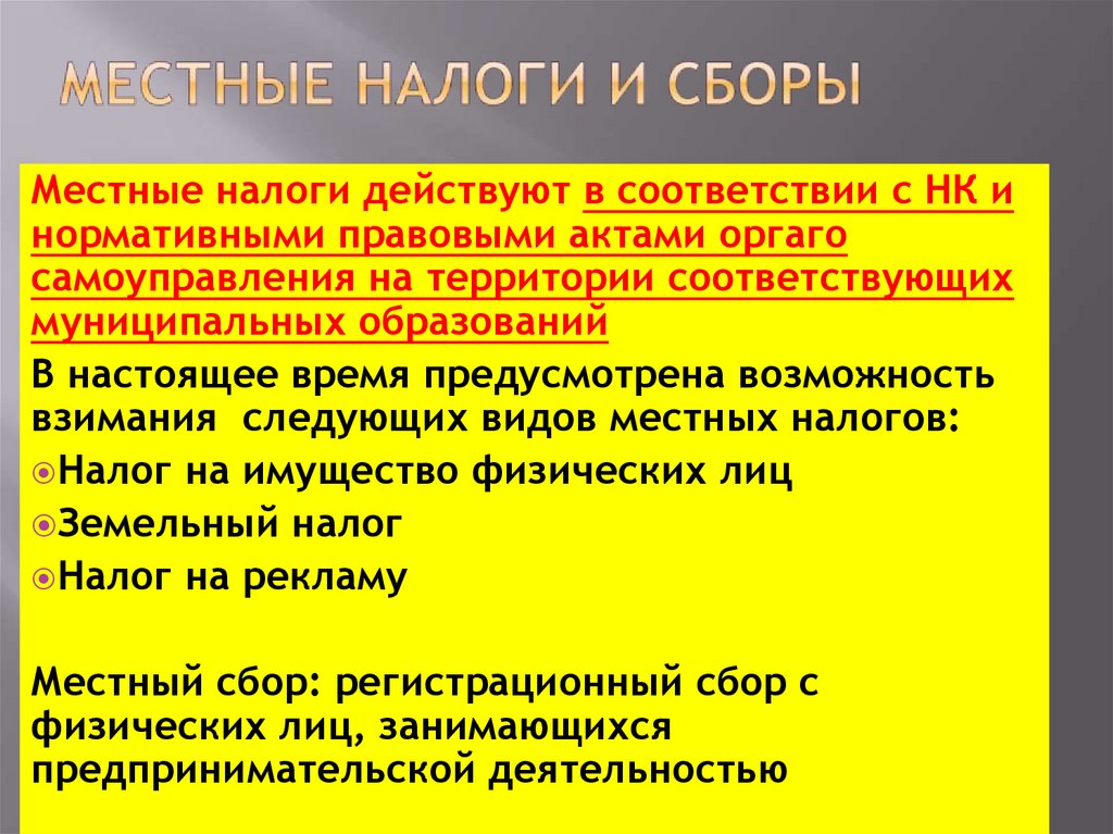 Местные налоги действуют в соответствии с НК инормативными правовыми актами оргаго