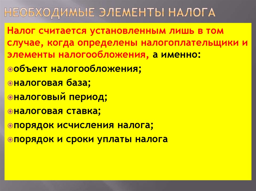 Налог считается установленным лишь в томслучае, когда определены налогоплательщики и