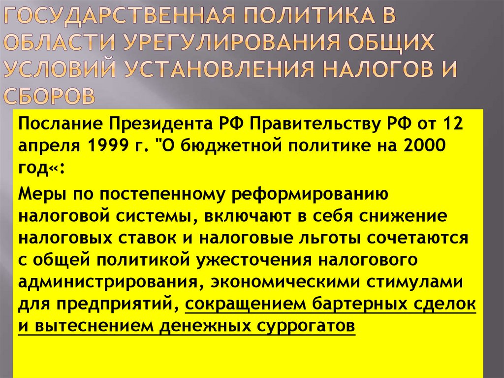 Послание Президента РФ Правительству РФ от 12апреля 1999 г. "О бюджетной политике на 2000