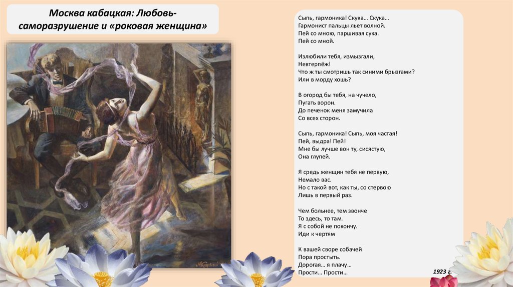 Москва кабацкая: Любовьсаморазрушение и «роковая женщина»Сыпь, гармоника! Скука… Скука…