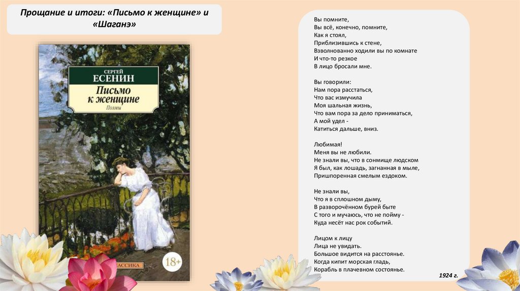 Прощание и итоги: «Письмо к женщине» и«Шаганэ»