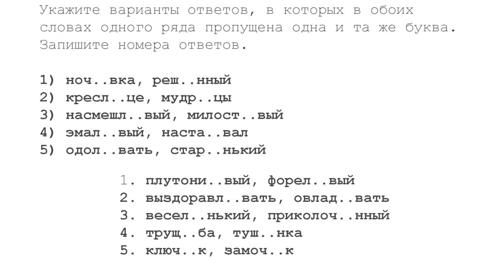 Укажите варианты ответов, в которых в обоихсловах одного ряда пропущена одна и та же буква.