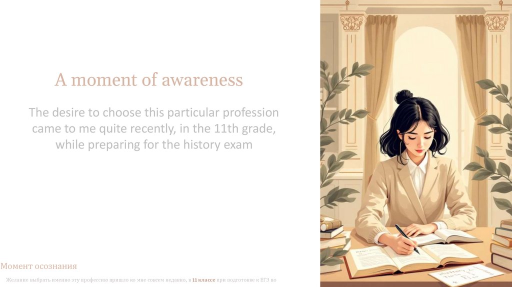 Желание выбрать именно эту профессию пришло ко мне совсем недавно, в 11 классе при подготовке к ЕГЭ по