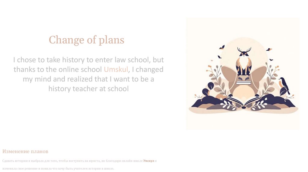 изменила свое решение и поняла что хочу быть учителем истории в школе.