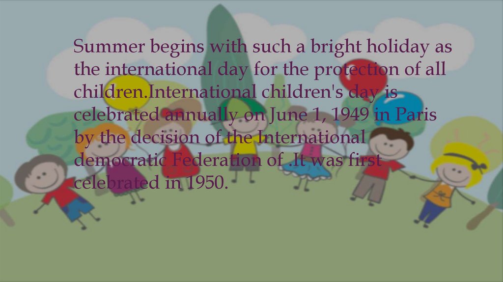 Summer begins with such a bright holiday asthe international day for the protection of all