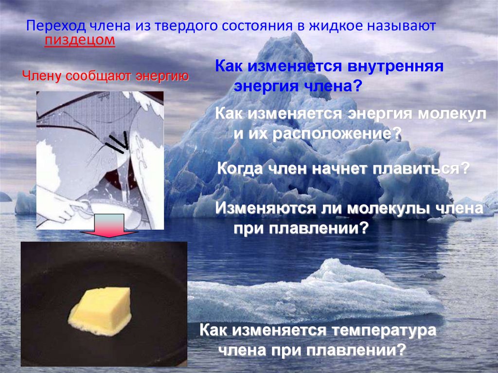 Переход члена из твердого состояния в жидкое называютпиздецом