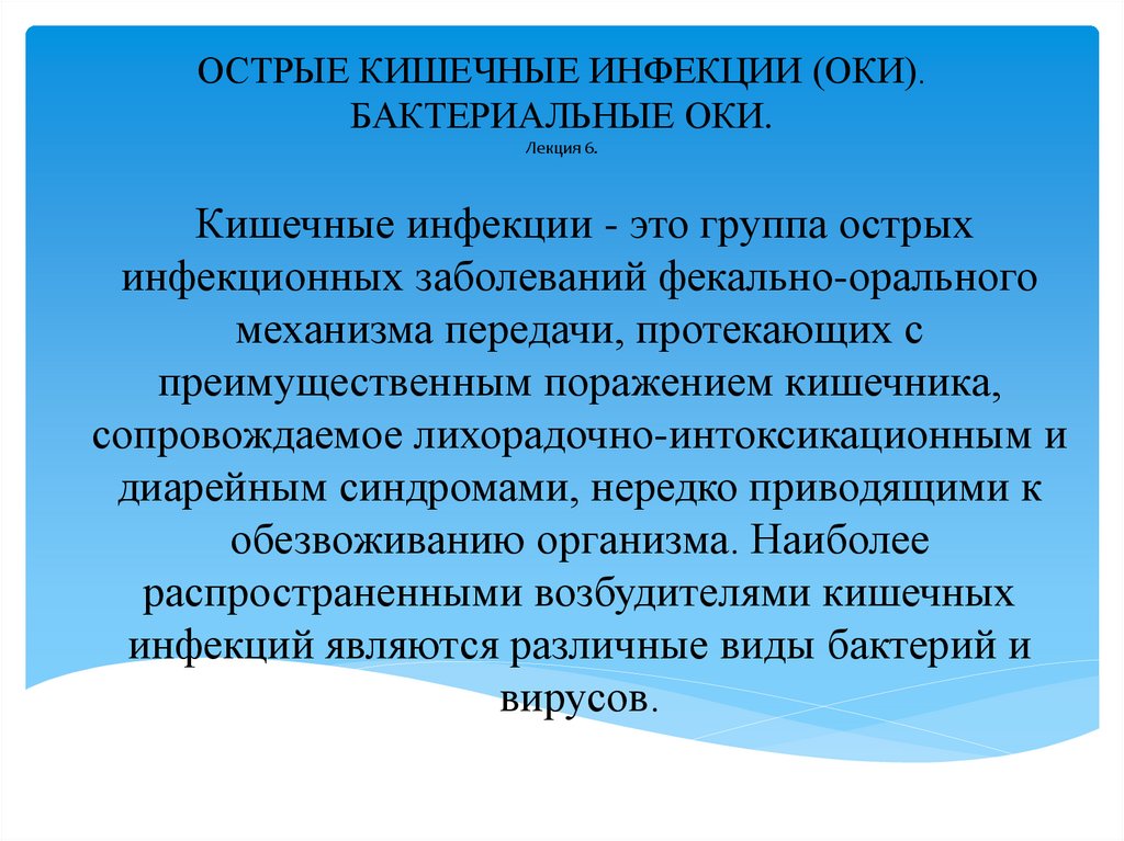 1. ОСТРЫЕ КИШЕЧНЫЕ ИНФЕКЦИИ (ОКИ). БАКТЕРИАЛЬНЫЕ ОКИ. Лекция 6.