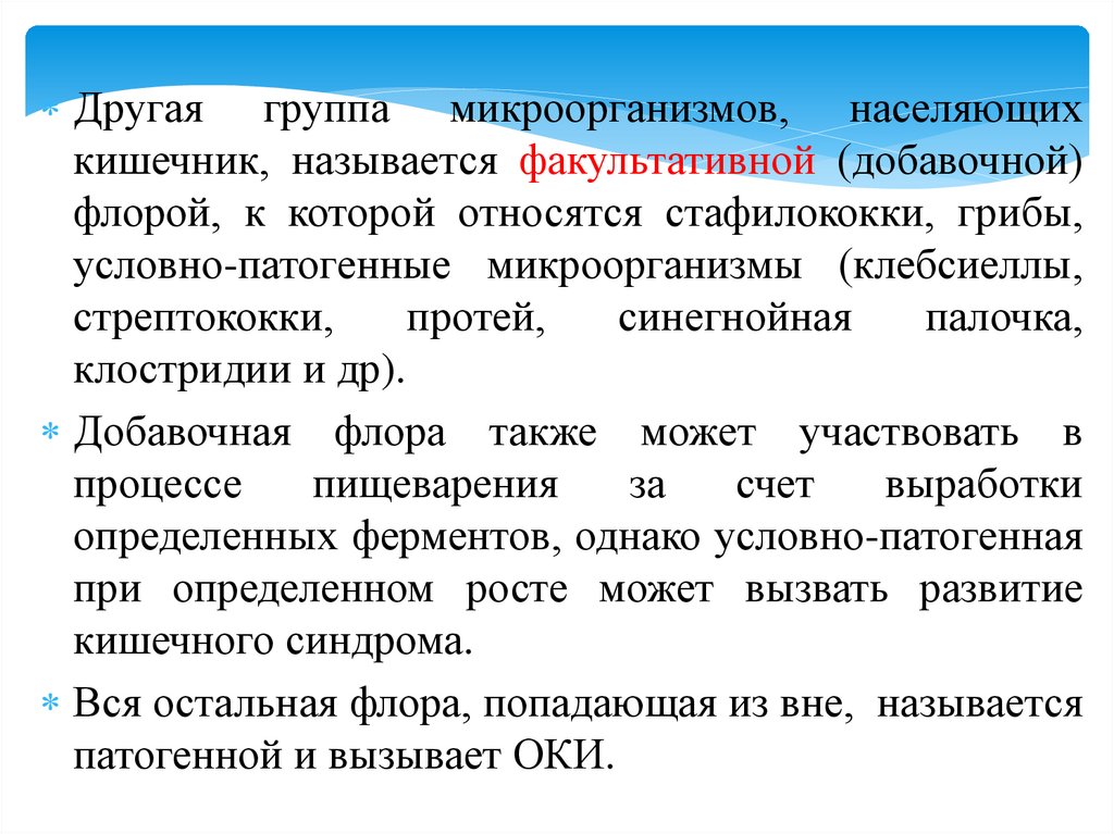 Другая группа микроорганизмов, населяющихкишечник, называется факультативной (добавочной)