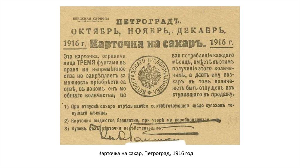 Карточка на сахар, Петроград, 1916 год27. Выводы: