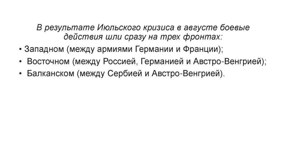 • Балканском (между Сербией и Австро-Венгрией).