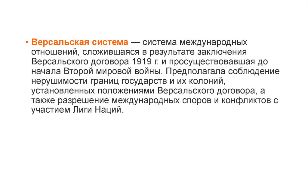 • Версальская система — система международныхотношений, сложившаяся в результате заключения