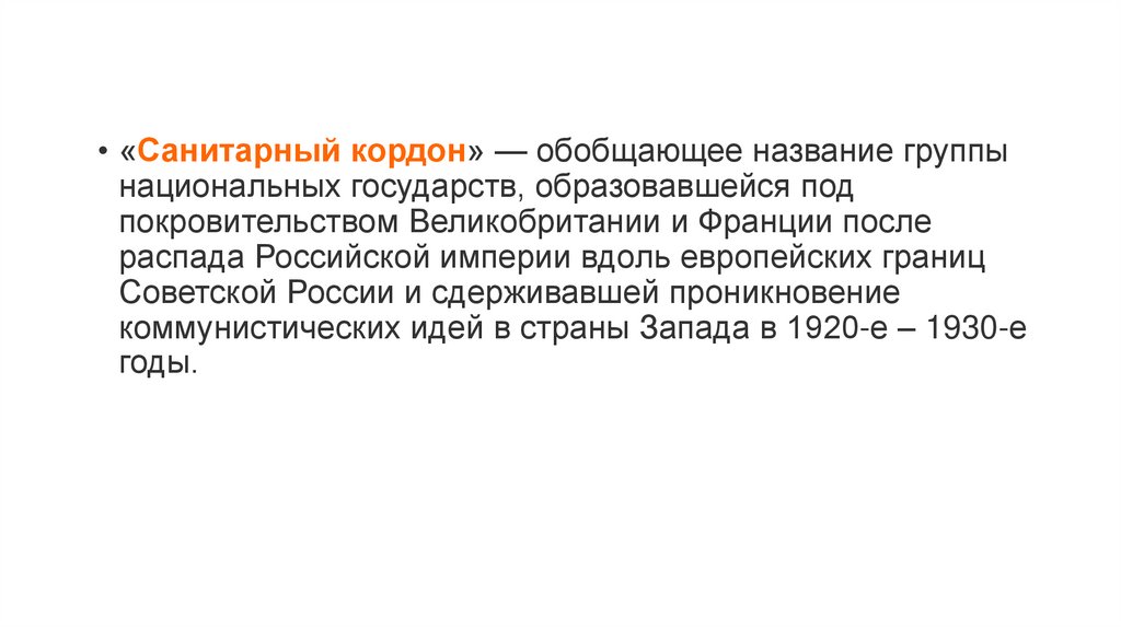 • «Санитарный кордон» — обобщающее название группынациональных государств, образовавшейся под