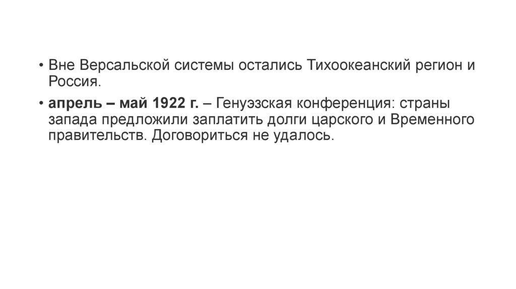 • Вне Версальской системы остались Тихоокеанский регион иРоссия.