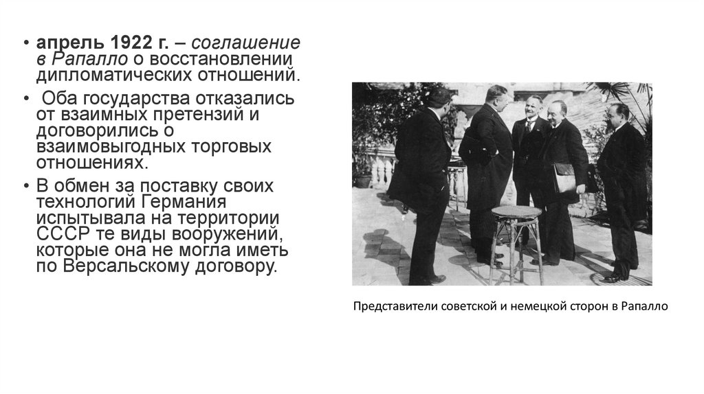 • апрель 1922 г. – соглашение в Рапалло.