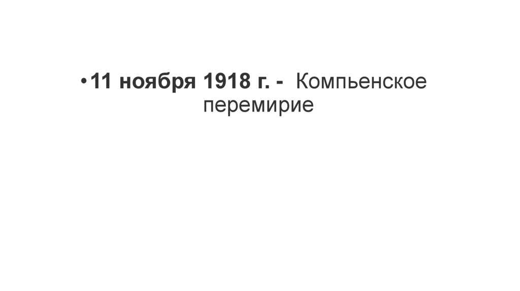 • 11 ноября 1918 г. - Компьенскоеперемирие