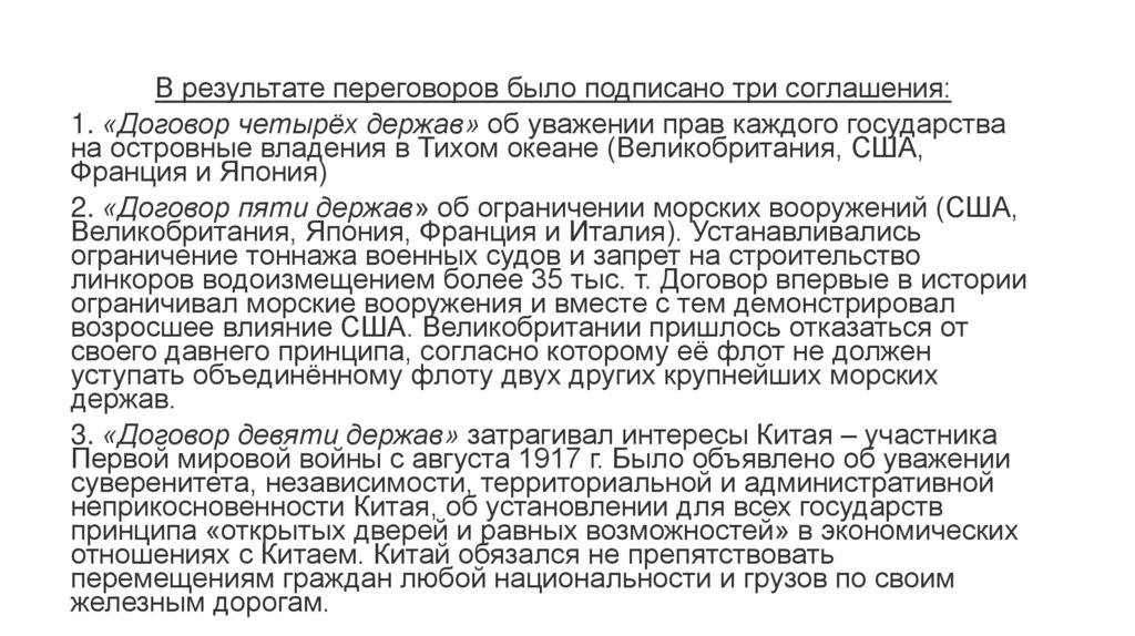 • ноябрь 1921 – февраль 1922 г. – Вашингтонская мирная