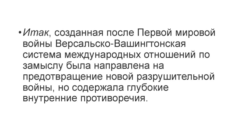 • Итак, созданная после Первой мировойвойны Версальско-Вашингтонская