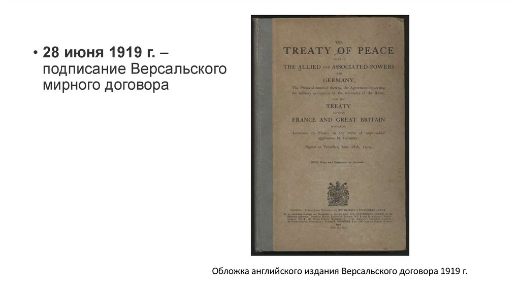 • 28 июня 1919 г. – подписание Версальского мирного