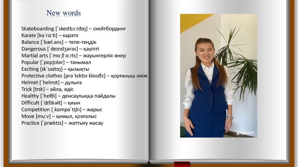 New wordsSkateboarding [ˈskeɪtbɔːrdɪŋ] – скейтбординг