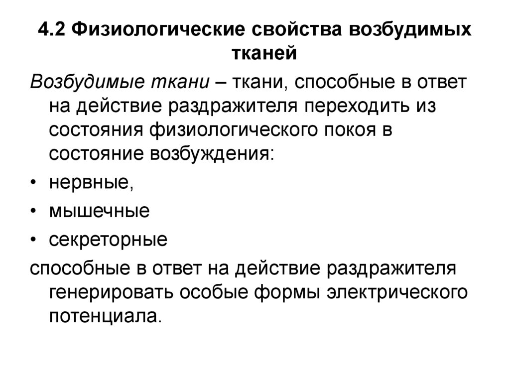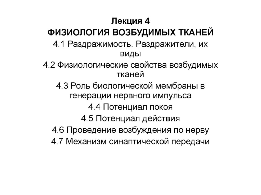 Лекция 4ФИЗИОЛОГИЯ ВОЗБУДИМЫХ ТКАНЕЙ