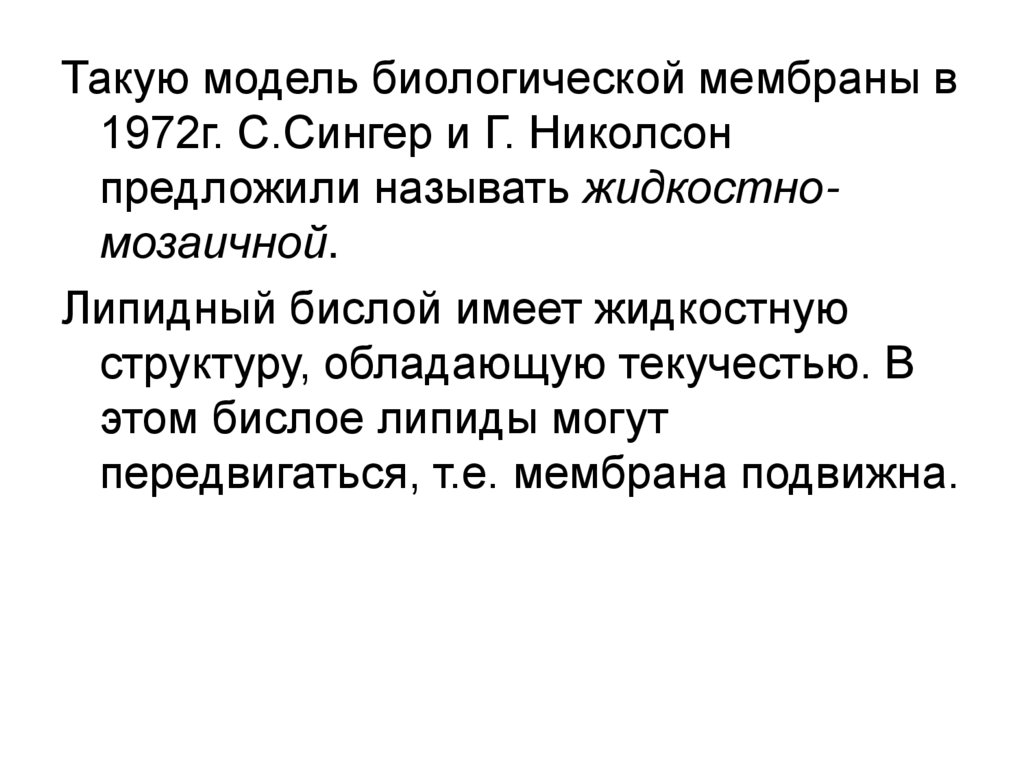 Такую модель биологической мембраны в1972г. С.Сингер и Г. Николсон
