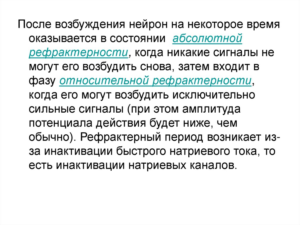 После возбуждения нейрон на некоторое времяоказывается в состоянии абсолютной