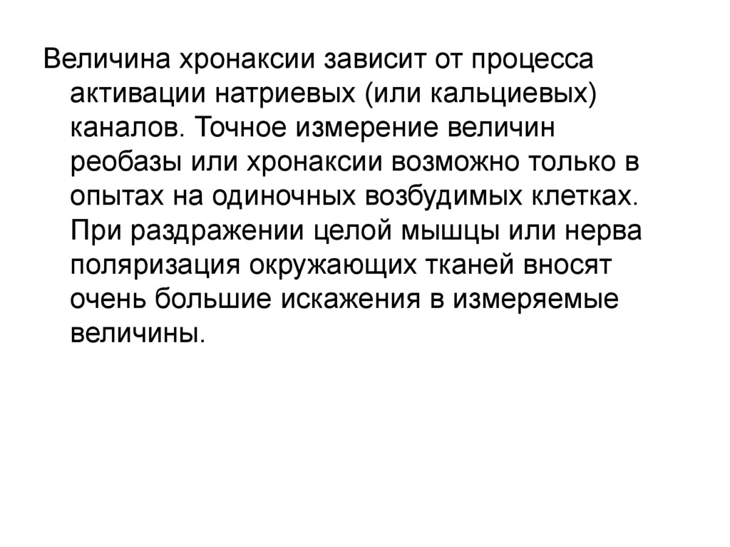 Величина хронаксии зависит от процессаактивации натриевых (или кальциевых)