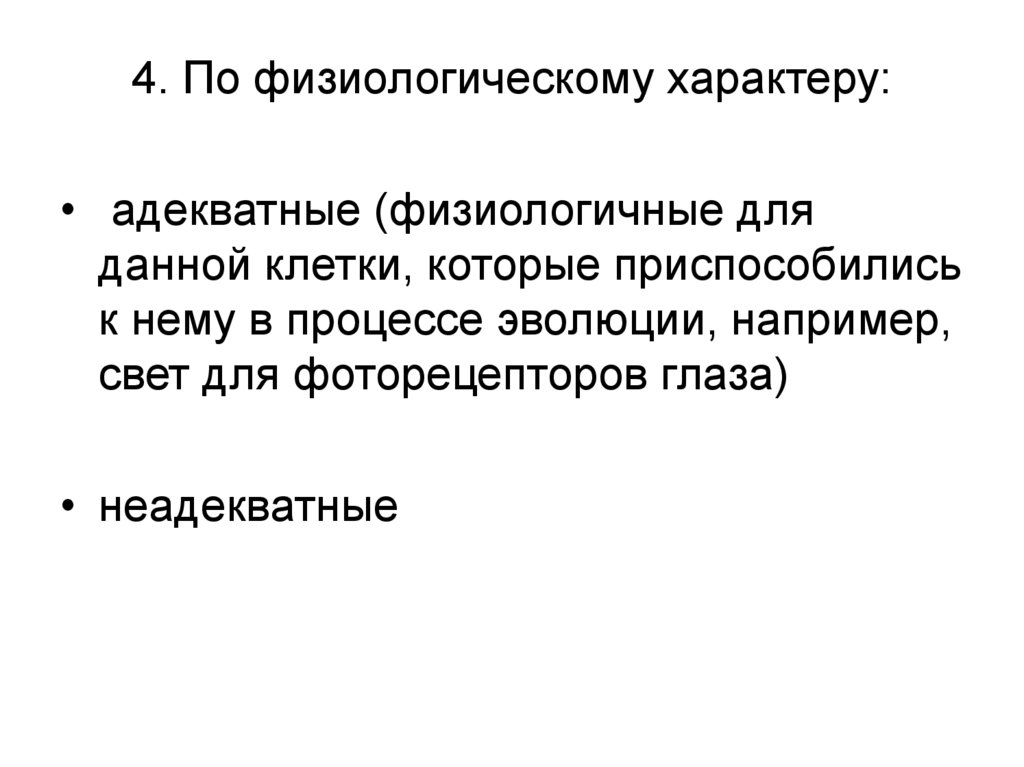 4. По физиологическому характеру:• адекватные (физиологичные для