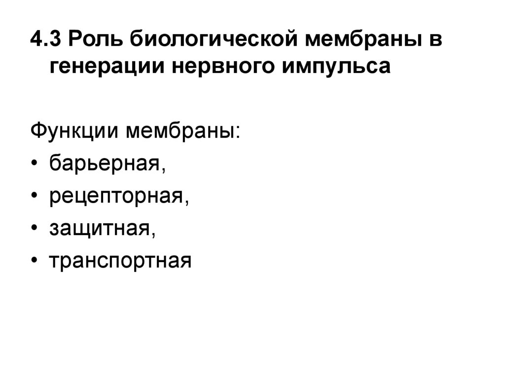 4.3 Роль биологической мембраны вгенерации нервного импульса