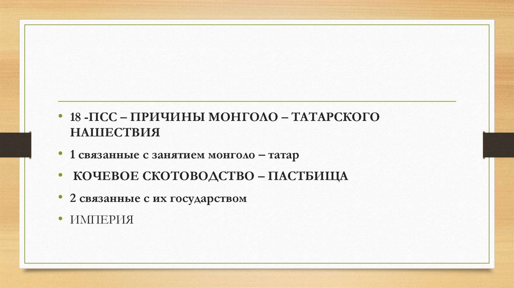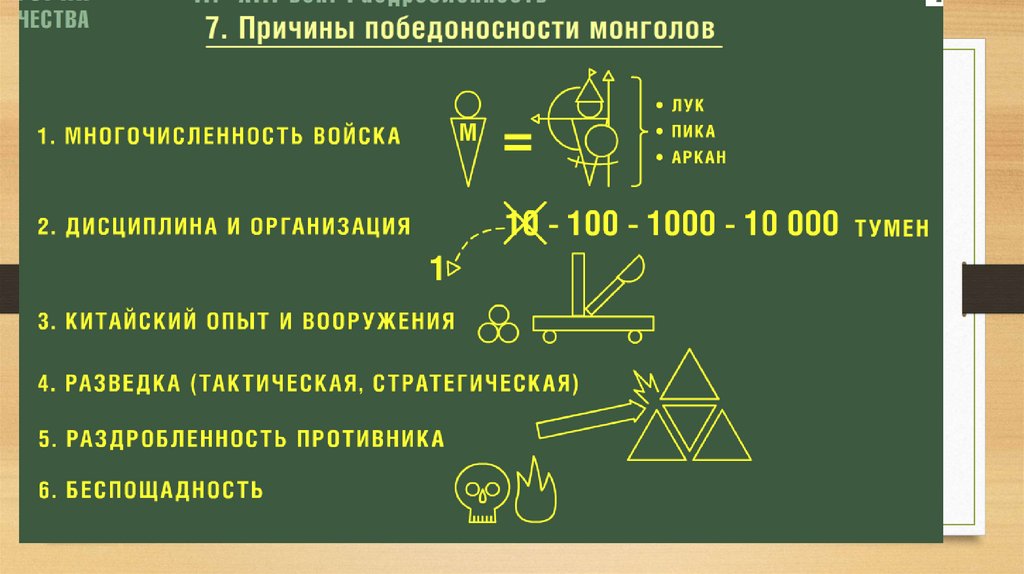 • 1) жёсткая военная дисциплина монголо-татар