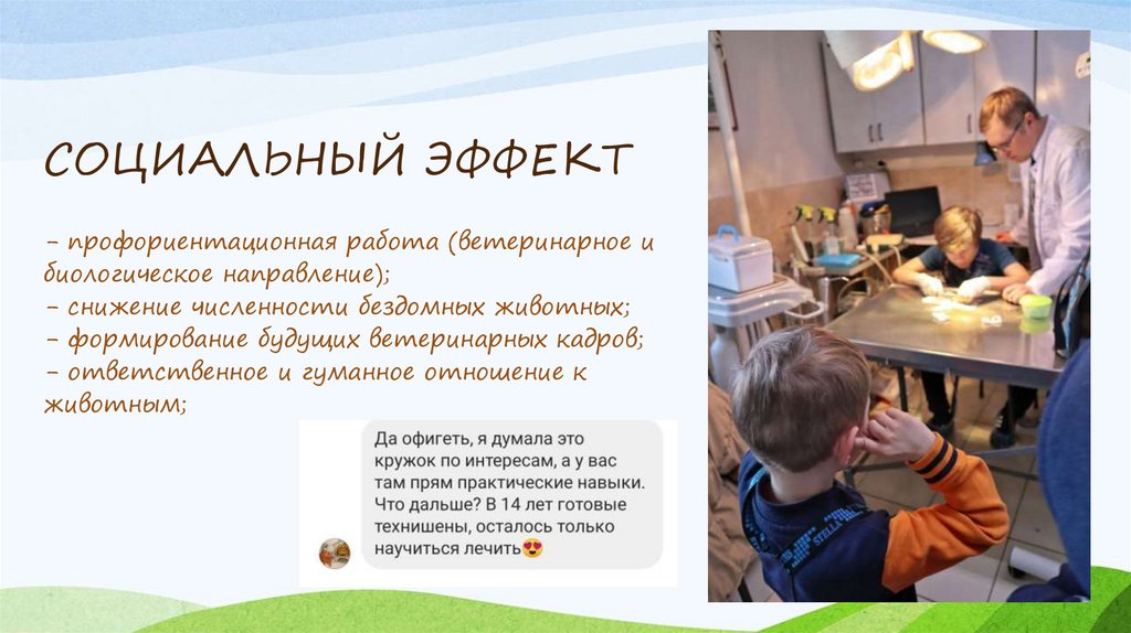 СОЦИАЛЬНЫЙ ЭФФЕКТ- профориентационная работа (ветеринарное и