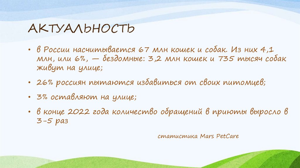 АКТУАЛЬНОСТЬ• в России насчитывается 67 млн кошек и собак. Из них 4,1
