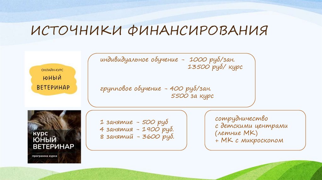 ИСТОЧНИКИ ФИНАНСИРОВАНИЯиндивидуальное обучение - 1000 руб/зан.