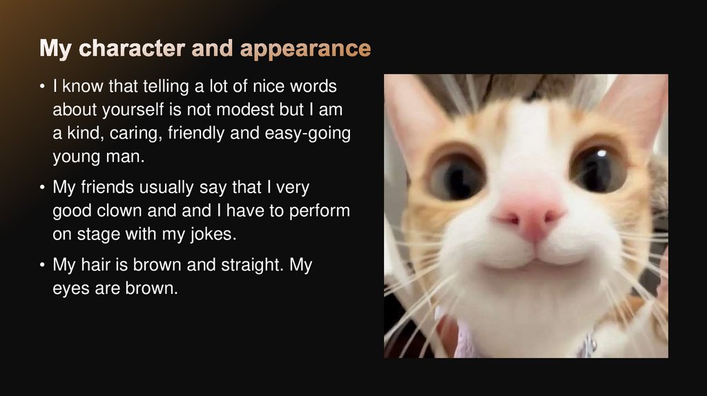 • I know that telling a lot of nice wordsabout yourself is not modest but I am