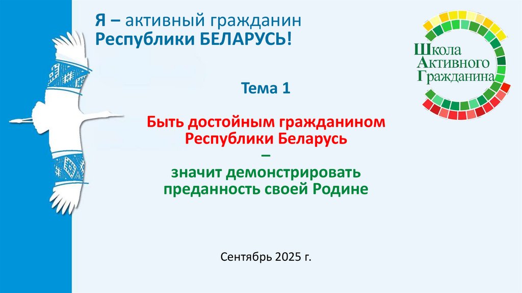 1. Тема 1 Быть достойным гражданином Республики Беларусь – значит демонстрировать преданность своей Родине
