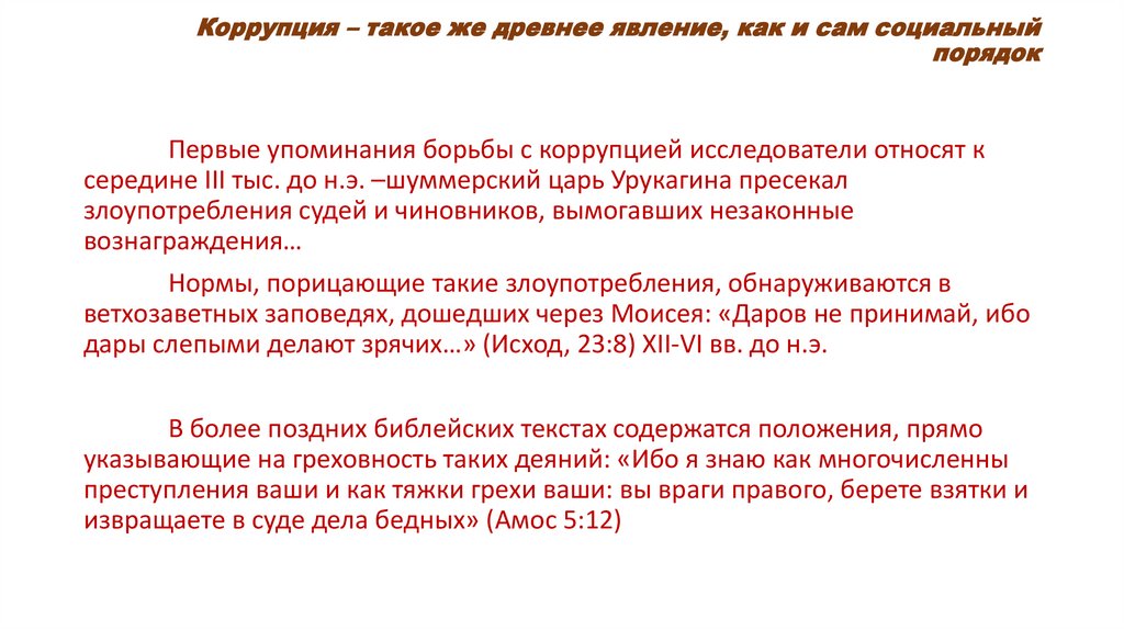 1. Коррупция – такое же древнее явление, как и сам социальный порядок