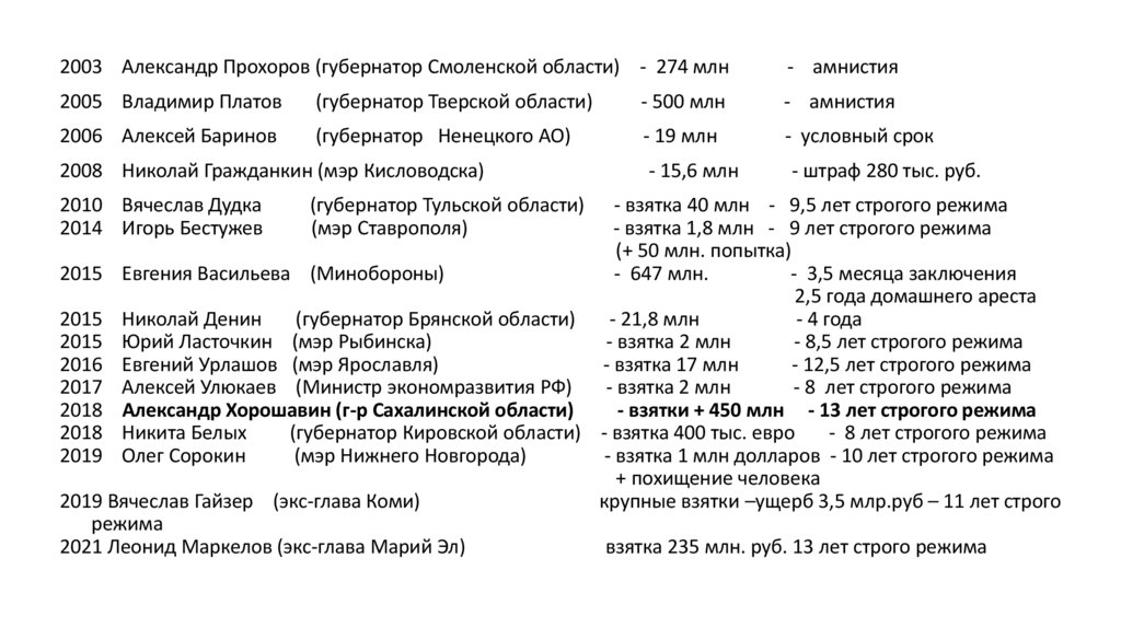 2003 Александр Прохоров (губернатор Смоленской области) - 274 млн- амнистия