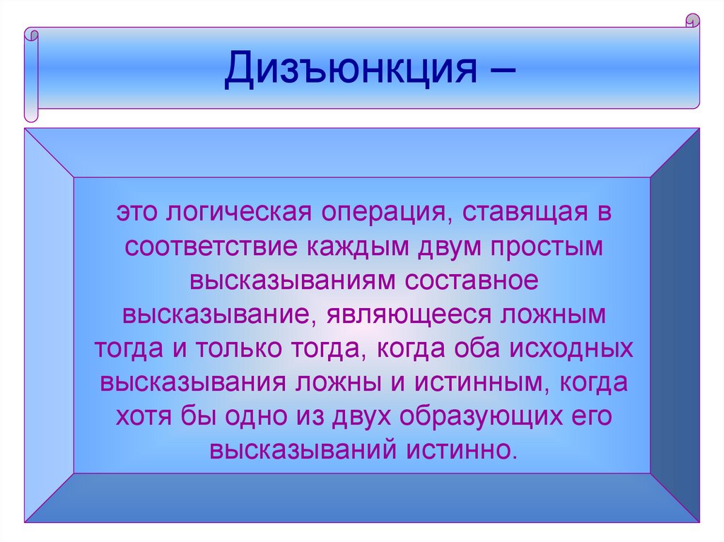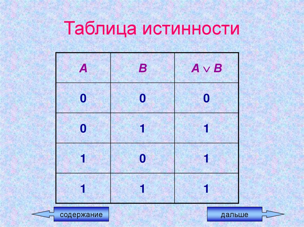 11. Логическая операция ДИЗЪЮНКЦИЯ (логическое сложение)