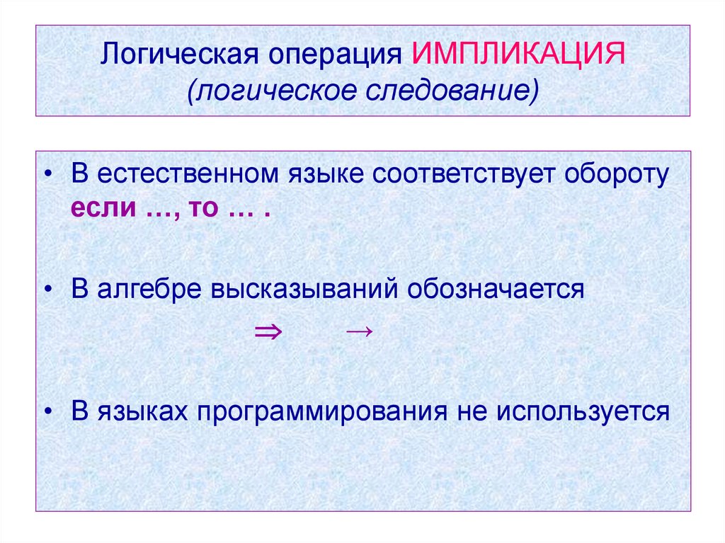 Логическая операция ИМПЛИКАЦИЯ(логическое следование)