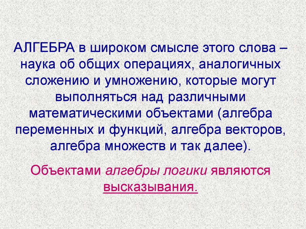 АЛГЕБРА в широком смысле этого слова –наука об общих операциях, аналогичных
