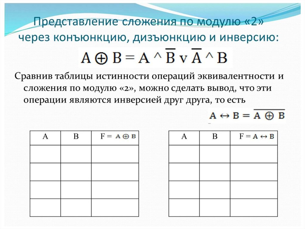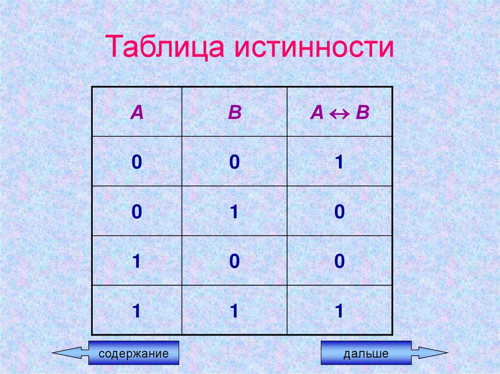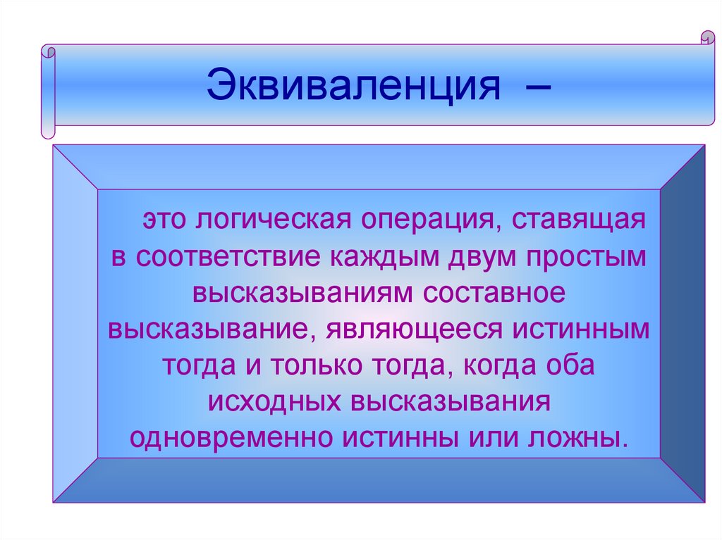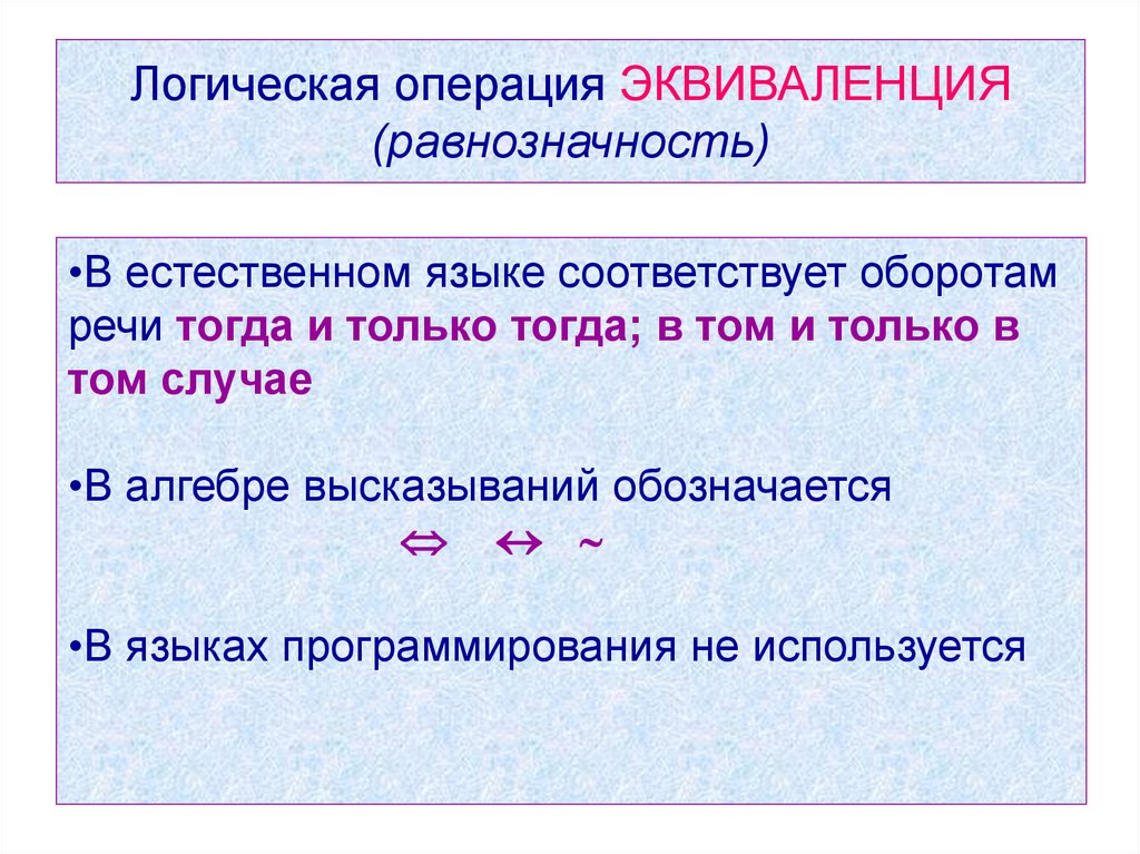 Логическая операция ЭКВИВАЛЕНЦИЯ(равнозначность)